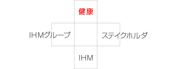 IHMのコーポレートシンボルは、IHMとグループ各社および提携会社が「お客様の健康と家庭を支える」という同じ夢に向かって前進するという意味が込められております。コーポレートカラーには、生命と健康の象徴である『赤』を使用しております。